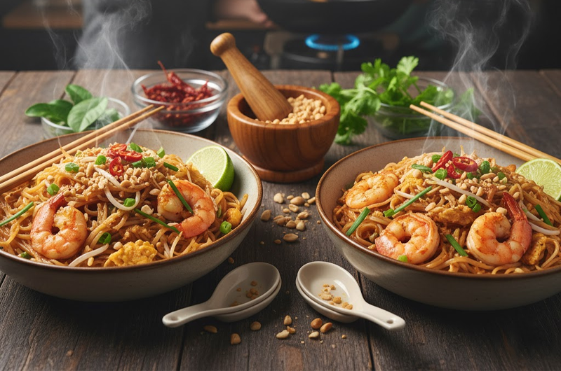 - Pad Thai – нудли с автентичен вкус – със скариди, пресни подправки и лайм – ще си оближете пръстите!