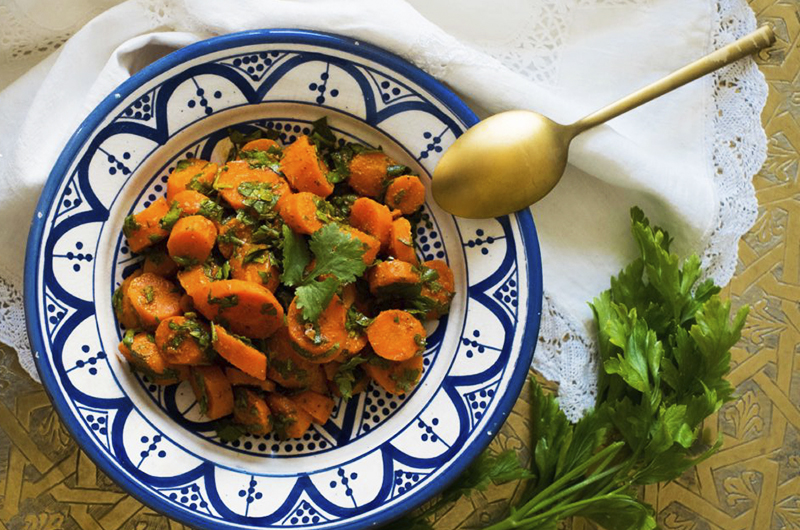 Ярки, крехки моркови, облагородени с топлия, земен вкус на кимион и свеж кориандър. Леко мариновано и пълно с характер, това ястие балансира сладост и подправки, носи свежест и събужда апетита, като същевременно заземява цялото меню.