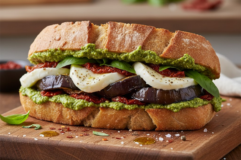 - Сандвич с песто, моцарела и печени патладжани – ароматен микс от средиземноморски вкусове